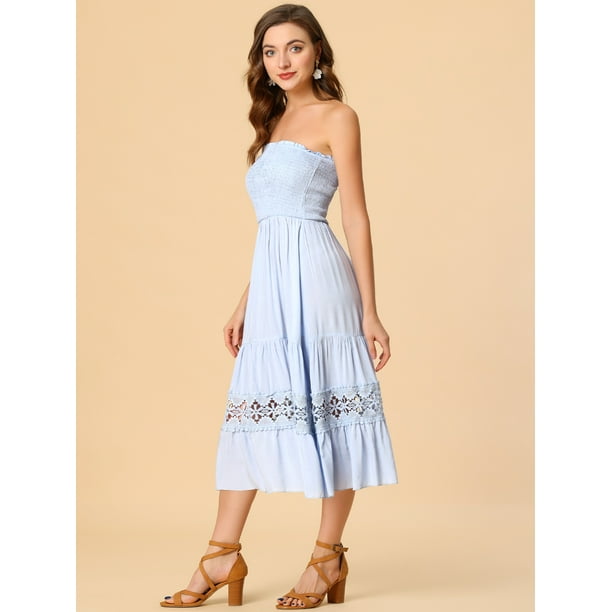 Women S Summer Maxi Dress Off Shoulder Ruffle Smocked Beach Midi Dress Light Blue Xs Walmart Ca